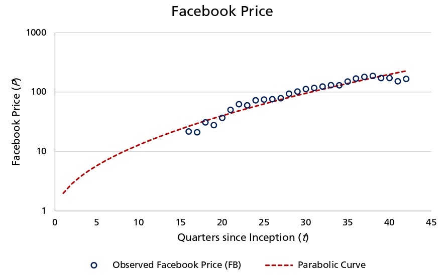また、フェイスブック(現メタ)の株価なんかも、このメトカーフの法則に従っています。