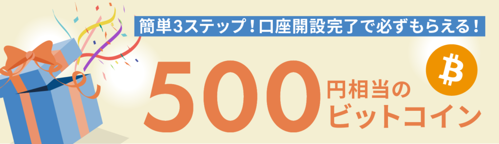 また、2021年7月9日までなら500円相当のビットコインが必ずもらえるので、忘れないうちに口座開設しておきましょう!