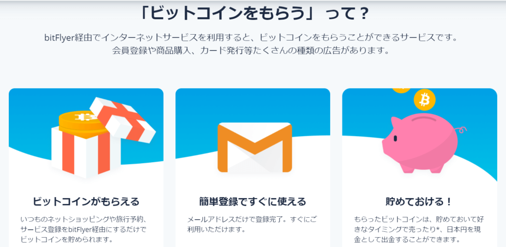 メリットでも述べたように、bitFlyerはBTCをもらえるいろいろなサービスを行っています。