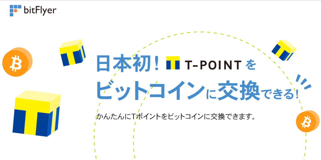 bitFlyerでは、Tポイント(100ポイントから)をBTCに交換できるサービスを独自にやっています。