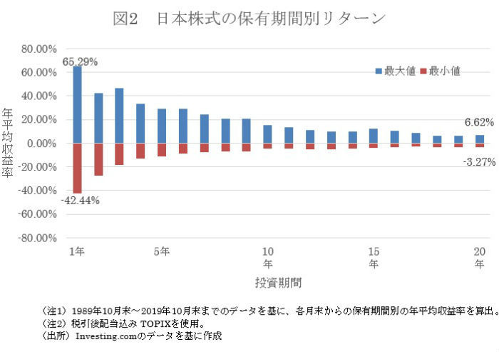 長い期間運用することで、リスクを減らすことができます。