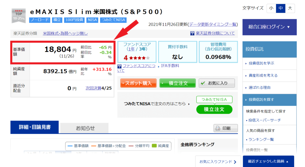 - 楽天証券やSBI証券などのネット証券であれば、「販売手数料/買付手数料」および「信託財産留保額/換金手数料」がかからない商品が多い